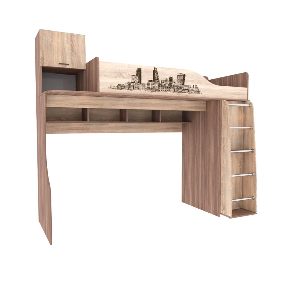 Спальня Орион. Кровать-чердак ясень шимо/дуб сонома