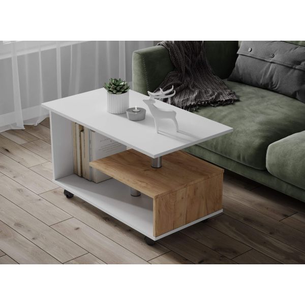 Журнальный стол Консул-5 белый/дуб крафт золотой